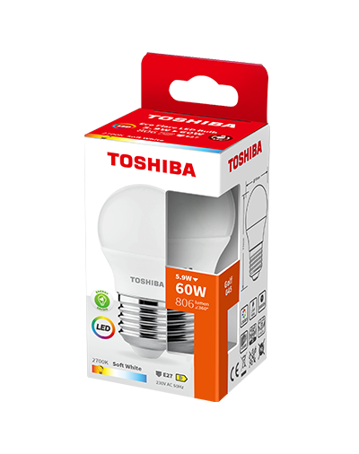 | 00187513 | TOSHIBA LED ECO FLARE G45 E27 5.9W 2700K | 4711510585180 | 5.9W | 806 LM | 2700K | E27 | D |