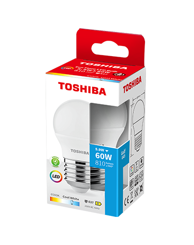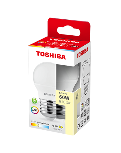 | 00187514 | TOSHIBA LED ECO FLARE G45 E27 5.9W 4000K | 4711510585203 | 5.9W | 810 LM | 4000K | E27 | D |